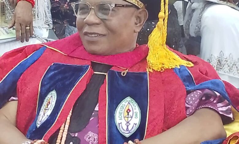 The Achievers University, Owo, Ondo State has conferred Honorary Doctoral Degree on the Deji and Paramount Ruler of Akure Land, Oba (Dr) Aladetoyinbo Ogunlade Aladelusi, CFR, Odundun II.