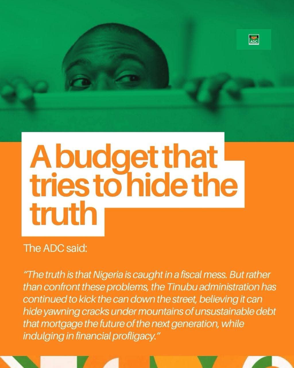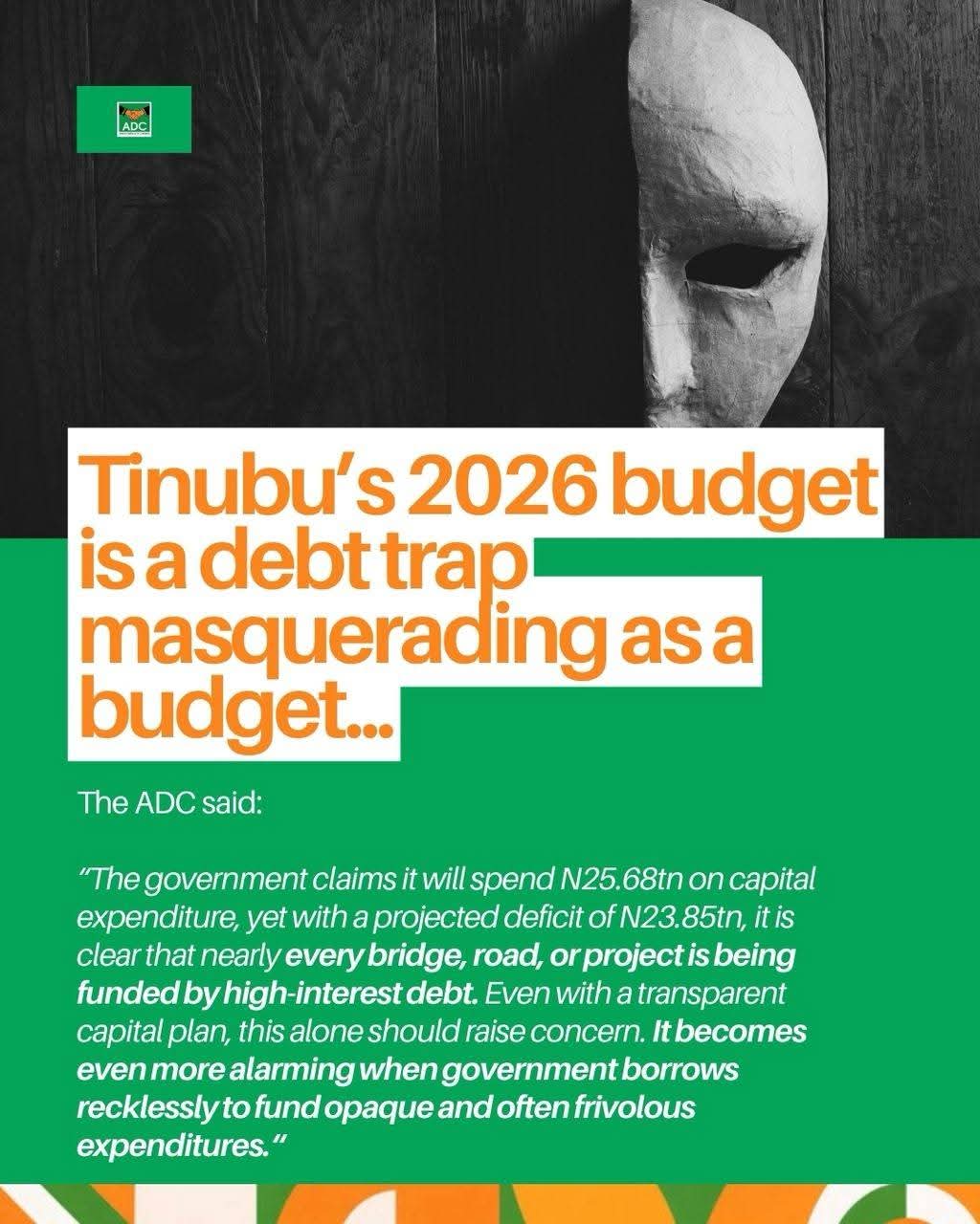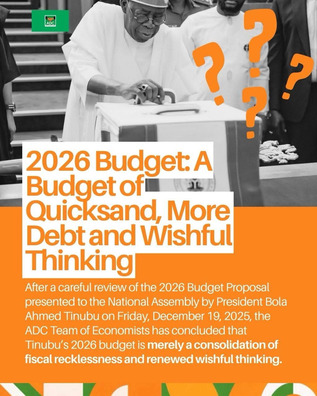 1. After a careful review of the 2026 Budget Proposal presented to the National Assembly by President Bola Ahmed Tinubu on Friday, December 19, 2025, the ADC Team of Economists concludes as follows: