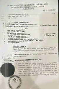 “That an order is hereby made that 1st 5th Defendants be served through the office of the Commissioner Police, Kano State who is to ensure immediate implementation of the order of the Hon. Court in the interest of justice.