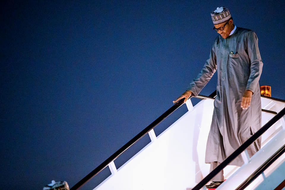 Nigeria's President Muhammadu Buhari arrives Dubai, UAE after Sunday's departure from Dead Sea, Jordan, where he had attended a World Economic Forum.