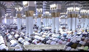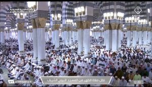 See photos of pilgrims at Zuhr prayer time in Madinah below: