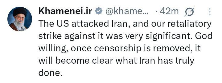 Iran’s Supreme Leader, Ayatollah Ali Khamenei, issued a strong statement on his official X handle on Wednesday 16 of July, 2025, declaring that the Islamic Republic’s retaliatory strike in response to Saturday June 22, 2025 United States (U.S.) military aggression was significant and deliberate.
