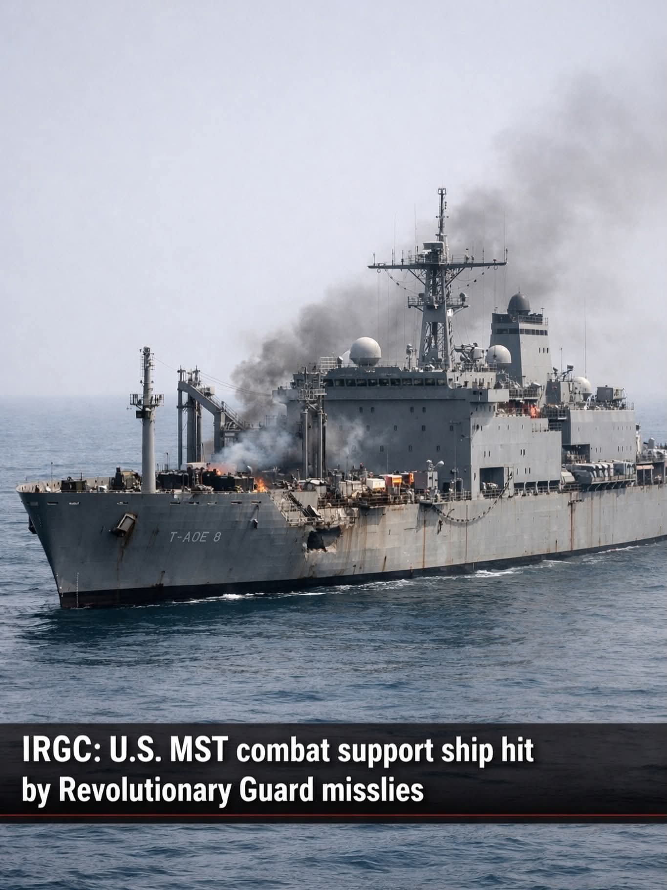 📍 Revolutionary Guard: The American combat support vessel MST was directly and severely hit by naval force missiles.