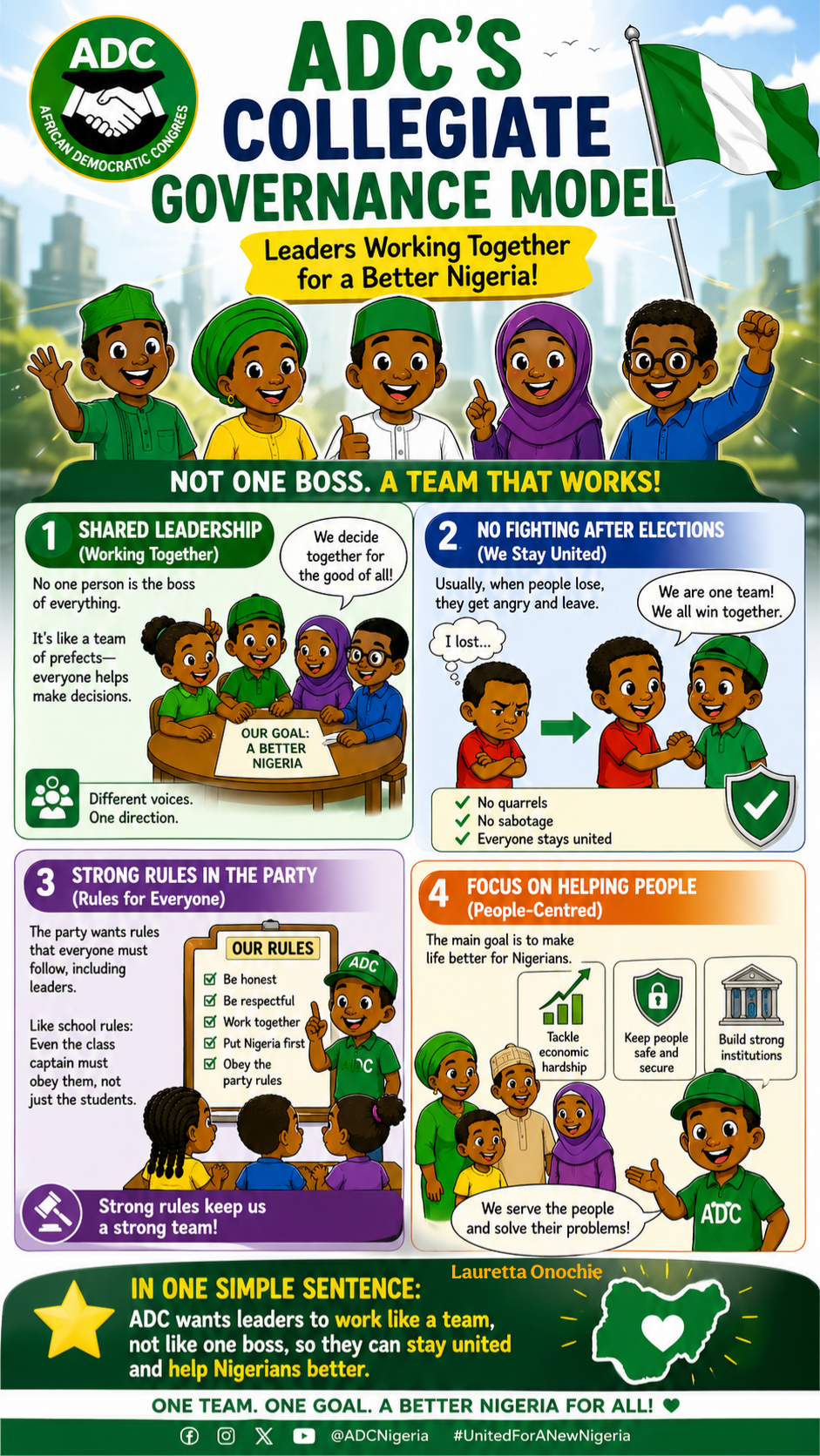 In one simple sentence, she said, “ADC wants leaders to work like a team, not like one boss, so they can stay united and help Nigerians better.