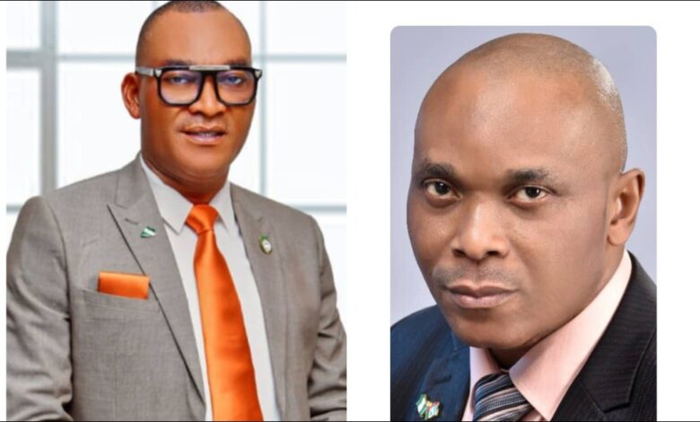 Michael Adeyanju, APC chieftain, greets OSOPADEC’s boss, Prince Poroye, over NBA Award