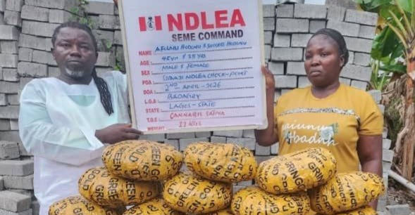 The National Drug Law Enforcement Agency (NDLEA) has arrested a pastor and his wife after recovering 11 kilograms of skunk concealed in their vehicle at the Seme border in Lagos State.