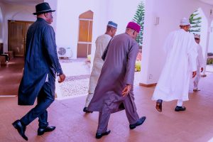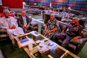 Also present at the meeting, held in the Council Chamber of State House, was the Vice President, Professor Yemi Osinbajo (SAN), President of the Senate, Senator Ahmed Lawan and Speaker of the House of Representatives, Rt. Hon. Femi Gbajabiamila.