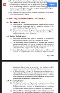 On PART 11 – Substitution Clause, the drafters proposed that the National Assembly shall invoke its inherent powers to expunge the schedule attached to decree 24 of 1999 often referred to as 1999 Constitution as amended from the decree, which “is now deemed to be an Act of the National Assembly to which the National Assembly have the powers to so do and replace same with a new governance model for Nigeria effective not later than October 1, 2024.”