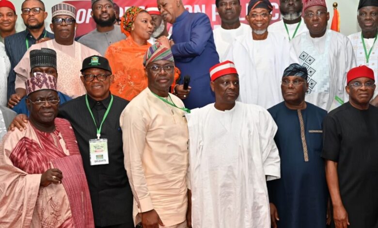 The summit, held at the Government House in Oyo State, brought together prominent political figures including Atiku Abubakar, Peter Obi, Rabiu Musa Kwankwaso, and David Mark, alongside other opposition leaders.