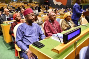 The Inauguration of the 74th United Nations General Assembly, with Prof. Tijjani Muhammad Bande presiding. Dr. Hajo Sani with Nigeria’s Deputy Permanent Representative to the UN/Charge d’ Affaires, H. E. Mr. Samson Itegboje and the representative of President Buhari, Mallam Garba Shehu, Senior Special Assistant on Media.