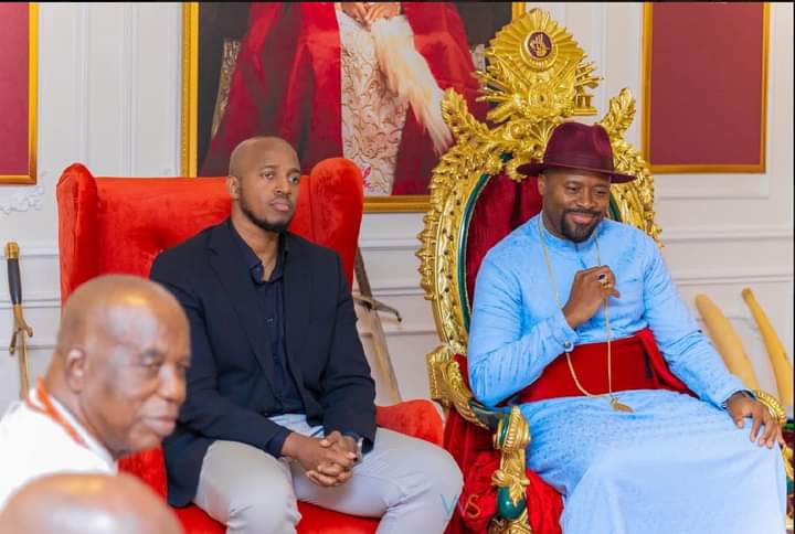 The arrival of King Oyo Nyimba Rukidi IV, the Omukama of Tooro, Uganda🇺🇬 as he pays visit to the OLU OF WARRI Kingdom, Ogiame Atuwatse III.