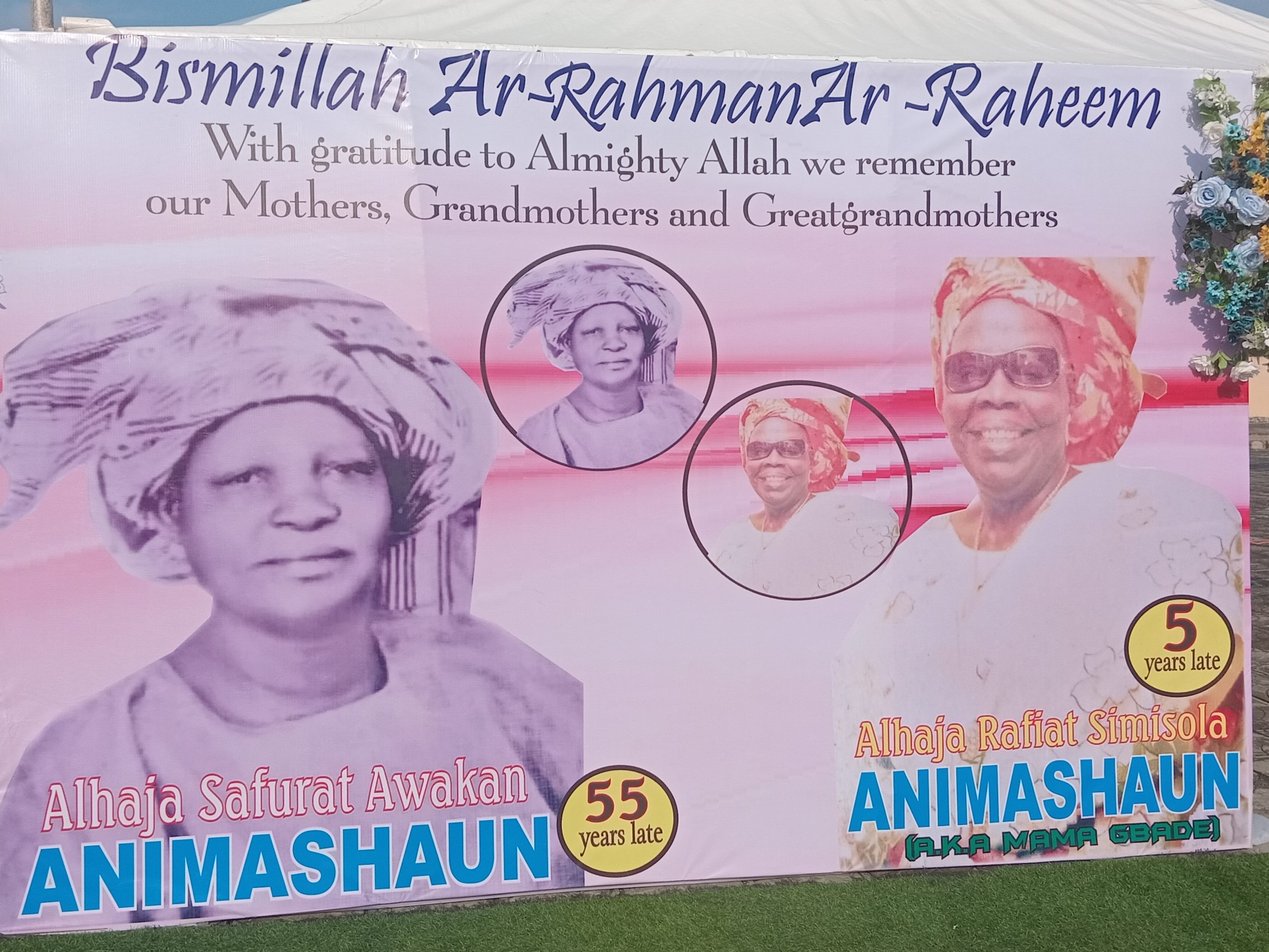 Prominent family members and friends of the Murtala Animashawun Family of Lagos converged on Lekki in the Eti-Osa Local Government Area of the Centre of Excellence on Saturday August 10, 2024 for the 55th and 5th remembrance prayers for late wife of the late Islamic cleric and broadcaster, Alhaja Safuratu Amori Awakan Animashawun a.k.a. Iya Saro, and her late daughter, Alhaja Rafiat Simisola Animashawun a.k.a. Iya Gbade, respectively.