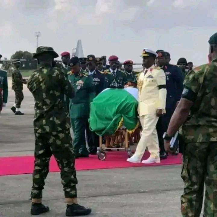 The DEFENDER reports that the remains of the late Chief of Army Staff, Lieutenant General Taoreed Abiodun Lagbaja, have arrived at the Nigerian Air Force wing of the Murtala Muhammed International Airport in Lagos en route Abuja.