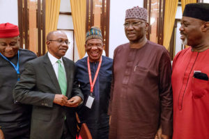 President Buhari with CEO Heirs Holdings Tony Elumelu, CEO Zenith Bank Jim Ovia and CEO Forte Oil Femi Otedola as he hosts Business Community and APC NWC to Break of Ramadan Fast in State House on Friday 24th May 2019.
