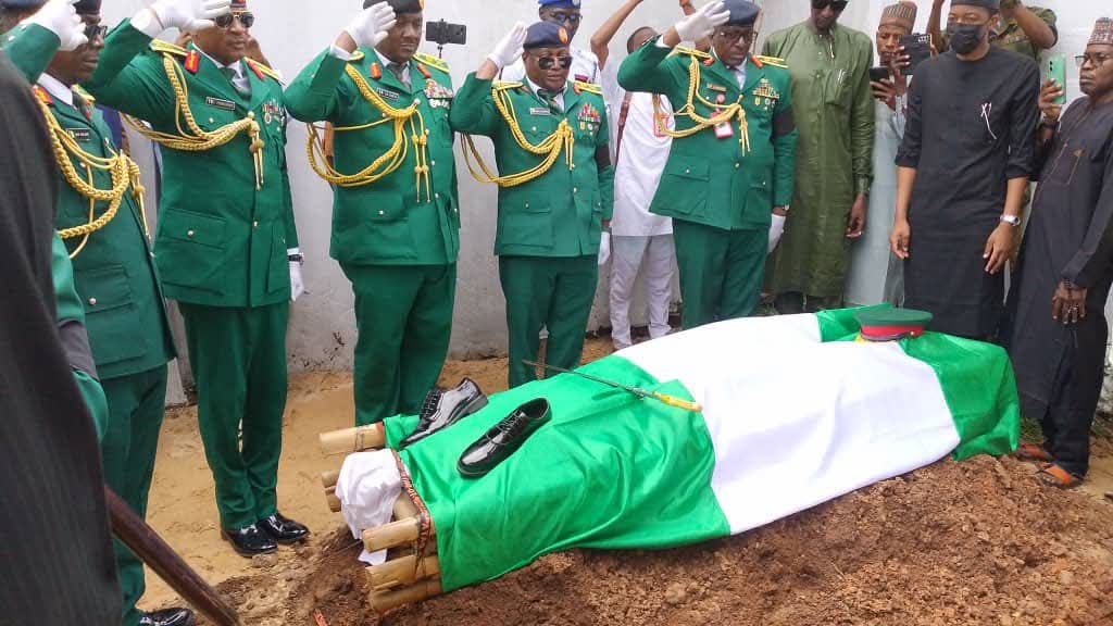 He was buried amidst full military honour as serving Generals of the Nigerian Army, who received his body from the aircraft at the airport, accorded him his deserving funeral respect including gun salutes at the grave site on Saturday August 22, 2025.