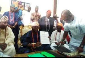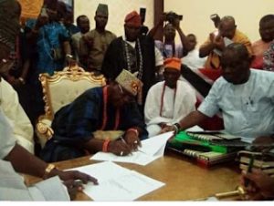 ROYALTY: Oba Ogunsanwo signs MoU, as he confers honorary chieftaincy on Trinidad and Tobago High Commissioner