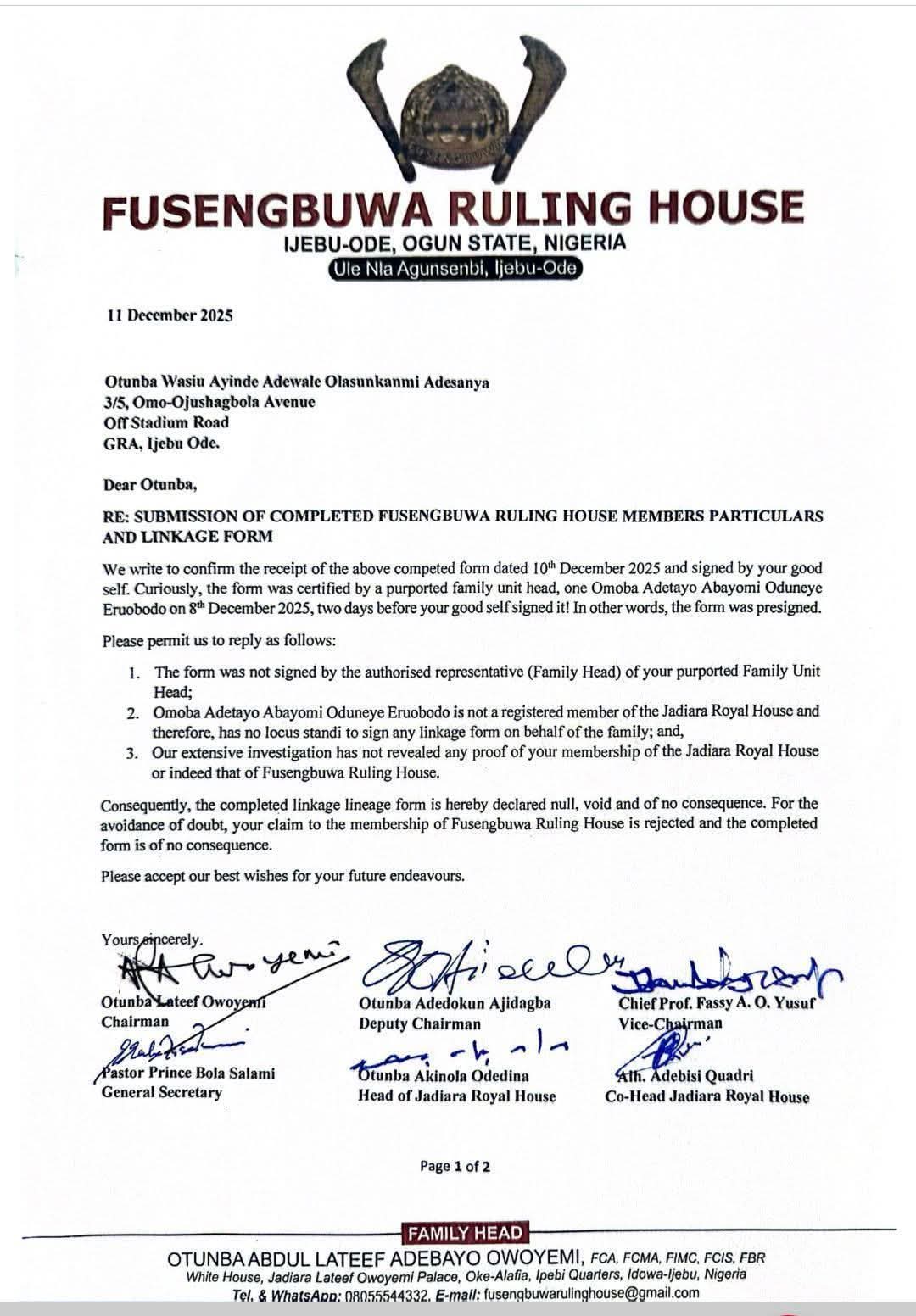 An ophthalmic surgeon and community leader, Otunba Adekunle Hassan, formally declared his interest before members of the Jadiara Branch of the Fusengbuwa Ruling House.