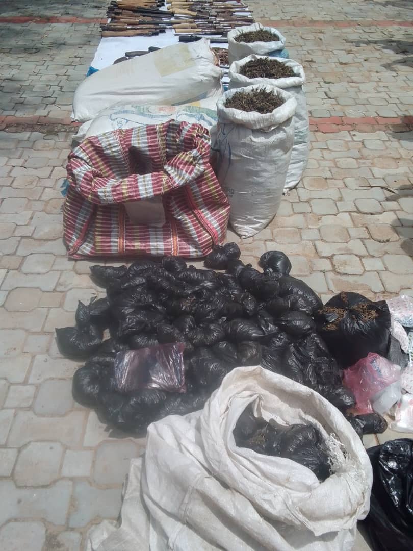 “The Anti-Kidnapping Unit also arrested Alhaji Shehu Aliyu in Gurusu Village. He was found with nine (9) sacks of dried leaves suspected to be Indian hemp.